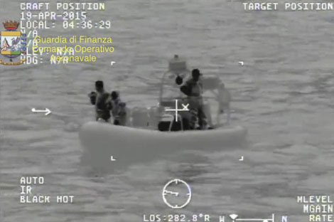 Una nave italiana realiza labores de rescate tras el naufragio de una embarcación con poco más de 700 migrantes, en la madrugada del domingo. El transporte, en el que viajaban unos 50 niños y 200 mujeres, según un sobreviviente, se hallaba a 130 kilómetros de la costa de Libia y se dirigía a la isla italiana de Lampedusa Foto Reuters