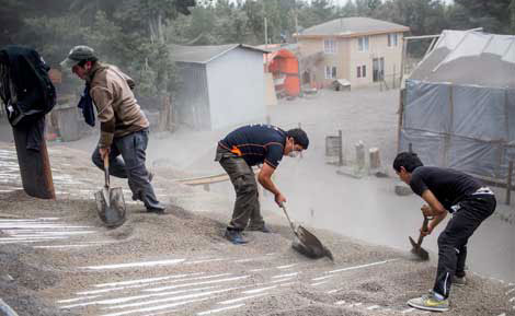 El coloso arrojó en la madrugada del jueves una columna de cenizas de unos 15 kilómetros de altura, que afectó ciudades chilenas (en la imagen, Ensenada) y argentinas, y provocó la suspensión parcial de vuelos en ambos lados de la frontera. Se informó que otras 4 mil personas fueron desalojadas de localidades cercanas. También hubo gran emisión de materiales incandescentes en medio de tormentas eléctricas y el desbordamiento del río Blanco, en la sureña región de los Lagos, a consecuencia del derretimiento de nieve Foto Ap