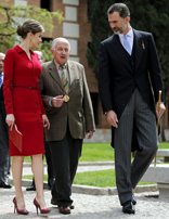 Los reyes de España, Letizia y Felipe VI, acompañan al escritor barcelonés, quien ayer recibió el Premio Cervantes 2014 Foto Reuters