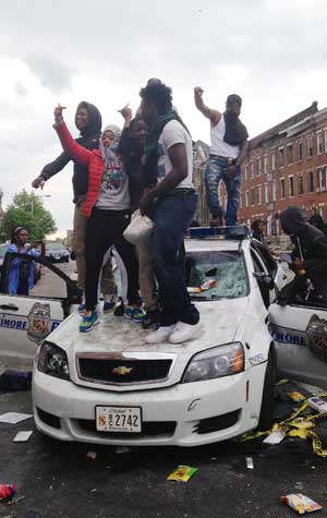 En los disturbios en Baltimore por la muerte del afroestadunidense Freddie Gray cuando estaba bajo custodia de la policía, fueron destrozadas varias patrullas Foto Ap