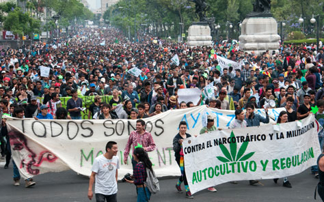 Miles de personas se reunieron en las inmediaciones del Palacio de Bellas Artes para conmemorar el Día Mundial por la Liberación de la Mariguana, en tanto que otras decenas acudieron a la explanada de la rectoría de Ciudad Universitaria para exigir la despenalización del uso de la yerba y declarar los espacios de CU como zona libre para su consumo. Manifestaciones similares se efectuaron en ciudades de Estados Unidos, Alemania, Argentina, España, Colombia y El Salvador Foto Cuartoscuro