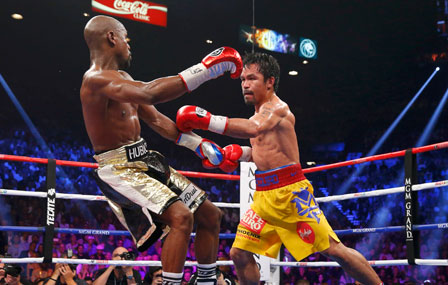 Mediante un boxeo frío, defensivo y calculador, que no le gustó al público que asistió a presenciar el combate, Floyd Mayweather se impuso al filipino Manny Pacquiao en el hotel MGM de Nevada. Fue en los primeros asaltos cuando Pacquiao consiguió dificultar la obra del estadunidense, y a partir de su voluntad y coraje presionó para que su rival no pudiera imponer su estilo poco espectacular Foto Reuters