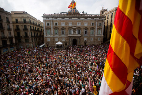 Miles de españoles llenaron ayer las plazas de las principales ciudades para vitorear a las nuevas autoridades, las cuales se han comprometido a reducir sus salarios, detener los desalojos de vivienda y eliminar los privilegios de los ricos. La imagen, en Barcelona, donde Ada Colau arrebató el poder al nacionalista conservador Xavier Trias Foto Ap