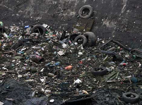 Desechos de todo tipo, arrastrados por las lluvias en barrancas de la delegación Álvaro Obregón, han provocado un taponamiento de 10 metros de longitud en los drenes de desagüe en la presa Mixcoac Foto Cristina Rodríguez