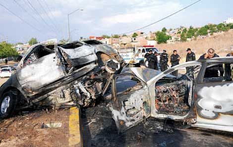 Ante la ola de violencia que afecta a la capital de Sinaloa se dice que la muerte está en cada esquina. Por ejemplo está el enfrentamiento y persecución entre los tripulantes de dos vehículos, el pasado 16 de junio, los cuales chocaron, y dos personas resultaron calcinadas Foto Leo Espinoza/ El Debate