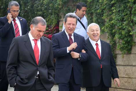 Gabino Cué, gobernador de Oaxaca; Eduardo Sánchez, vocero de la Presidencia, y Emilio Chuayffet, secretario de Educación Pública, tras el anuncio de la creación de