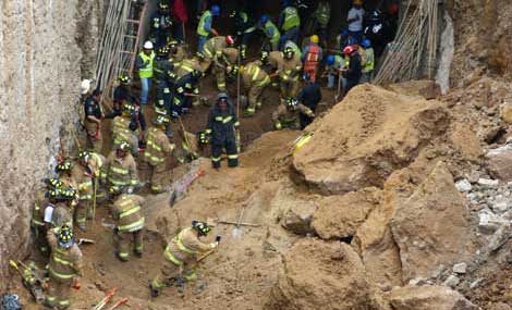 Un trabajador de la construcción muerto y dos más lesionados fue el saldo del accidente en una excavación a 20 metros de profundidad en obras de un puente en los límites de Cuajimalpa y el municipio mexiquense de Huixquilucan. Tras el colapso de tierra, un albañil quedó atrapado bajo toneladas de escombros. Su cuerpo sin vida fue localizado la tarde de ayer. Autoridades capitalinas y del estado de México dijeron que se está a la espera del dictamen pericial correspondiente para determinar si procede la clausura de las labores. Agregaron que se revisarán las condiciones en que se realizaban los trabajos para determinar si existió negligencia Foto Alfredo Domínguez