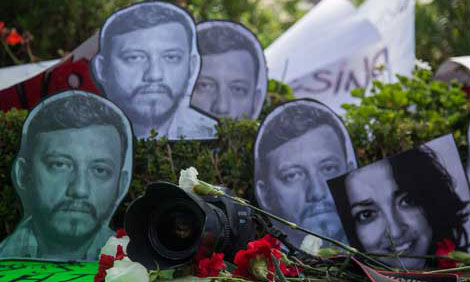La procuraduría capitalina identificó a Sergio Cervantes Conde como propietario del Ford Mustang que estaba en posesión de una de las cuatro víctimas asesinadas junto con el fotógrafo Rubén Espinosa Becerril. Se informó, asimismo, que el jefe de Gobierno del Distrito Federal, Miguel Ángel Mancera, tuvo contacto con el gobernador de Veracruz, Javier Duarte, para ahondar en los detalles del caso. Por su parte, el ombudsman nacional, Luis Raúl González Pérez, dijo que la CNDH da seguimiento especial a las indagatorias. En tanto, organismos internacionales como CIDH y WOLA condenaron el multihomicidio. Por tercer día consecutivo se realizaron actos de protesta en varios estados. En la imagen, ofrenda periodística en el jardín Villalongín, de la ciudad de México Foto Ignacio Juárez