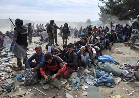 Bajo estrecha vigilancia policiaca, cientos de migrantes esperan en el poblado griego de Idomeni para cruzar la frontera hacia Macedonia e internarse hacia el centro de Europa en busca de asilo Foto Ap