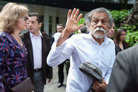 El pintor Francisco Toledo, acompañado por Sylvia Navarrete, directora del Museo de Arte Moderno, al término de la presentación de su exhibición Duelo. Al recordarle que no ha sido inmune a situaciones de inseguridad, el artista plástico juchiteco contestó: Hasta ahora no ha pasado más allá de las amenazas y, bueno, allí estamos. A ratos tenemos miedo, a ratos no Foto Cristina Rodríguez