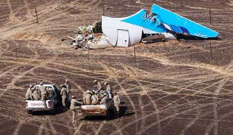 prematuras y no fundamentadas en hechos reales. En la imagen, militares egipcios realizan resguardo de los restos de la nave siniestrada. En tanto, Moscú informó ayer que bombardeó la región siria de Palmira, uno de los bastiones del grupo Estado Islámico, el cual se adjudicó el presunto atentado Foto Ap