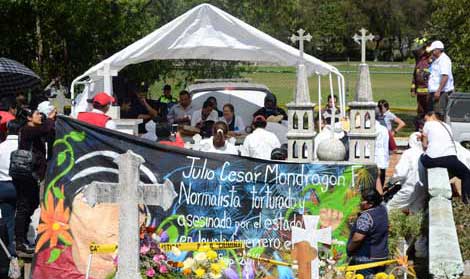 Los restos de Julio César Mondragón, asesinado la noche del 26 de septiembre de 2014 en Iguala, Guerrero, y cuyo cadáver fue localizado con el rostro desfigurado, fue exhumado ayer en el panteón de San Miguel Tecomatlán, en el municipio mexiquense de Tenancingo, para que se le practique una nueva necropsia en el Distrito Federal que permita establecer con claridad las causas de su muerte. En la diligencia estuvieron presentes familiares de la víctima, así como peritos argentinos, de la PGR y de la CNDH Foto agencia MVT