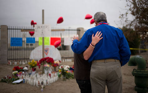 acto terroristael tiroteo perpetrado el miércoles pasado por un matrimonio musulmán en un centro para discapacitados de San Bernardino, California, que dejó 14 muertos y 21 heridos. Tashfeen Malik y su esposo, Syed Rizwan Farook, mostraban indicios de radicalización, pero no eran parte de una red más amplia, informó el director de la oficina, James Comey. En la imagen, ofrenda en honor de las víctimas, entre las que se encuentra el mexicano Juan Carlos Espinoza Foto Ap