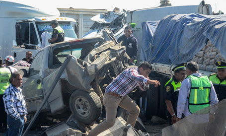 Un total de 14 muertos y 39 heridos fue el saldo de cuatro accidentes carreteros ocurridos entre el jueves y el viernes en los estados de México, Tamaulipas, Nayarit y Baja California. El percance más grave sucedió la mañana del día 24 en el Circuito Exterior Mexiquense, donde dos tráileres chocaron de frente y prensaron una camioneta, lo que provocó una carambola de al menos 60 vehículos que dejó seis fallecidos y 25 lesionados. Se informó que la concesionaria de la autopista cubrirá los gastos médicos y el gobierno mexiquense los funerarios. Ayer entregaron a familiares los cuerpos de las víctimas Foto Cuartoscuro