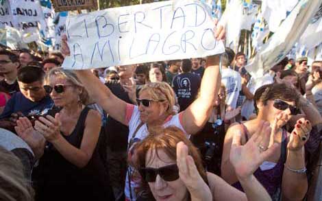 Integrantes de organizaciones sociales, políticas y de derechos humanos se concentraron en la emblemática Plaza de Mayo, en Buenos Aires, para demandar la liberación de Milagro Sala, diputada por el Parlamento del Mercado Común del Sur (Parlasur) y dirigente del movimiento Tupac Amaru, gran impulsor del empleo. La activista, quien inició una huelga de hambre, fue detenida el pasado sábado por orden del gobernador derechista de la norteña provincia de Jujuy, Gerardo Morales, por