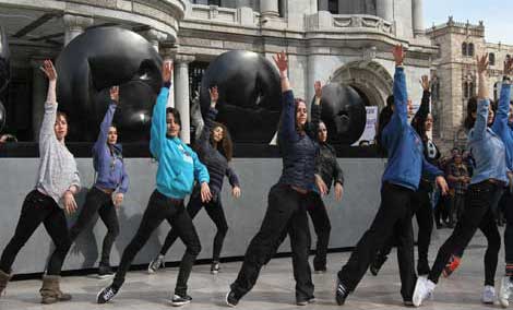 Integrantes de la Compañía Nacional de Danza se manifestaron en la explanada del Palacio de Bellas Artes para exponer una serie de inconformidades por los cambios en sus contratos. Expresaron que no han firmado los nuevos convenios por considerarlos amañados y que ya ha habido represalias de Laura Morelos, directora de la compañía, por lo que exigen su dimisión. En la protesta interpretaron fragmentos de El lago de los cisnes y de Sinfonía para nueve hombres. Hoy se reunirán con autoridades del INBA Foto María Luisa Severiano