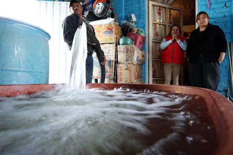 Un hogar de la colonia San Miguel Teotongo, en Iztapalapa, recibe suministro de agua de una de las 530 pipas que dispuso el gobierno capitalino para paliar el corte total del líquido por las obras de mantenimiento en el Sistema Cutzamala durante cuatro días Foto Jesús Villaseca