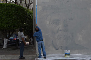 Empleados municipales de la capital oaxaqueña borran con pintura un mural de La Piztola, colectivo de arte urbano que exponía la historia de un maestro mezcalero en la parte exterior de la galería Piedra Lumbre, ubicada en las calles de Tinoco y Palacio. El inmueble había sido clausurado y la condición para reabrirlo era que la pintura fuera eliminada; la obra había sido expuesta en Londres Fotos Oaxacking
