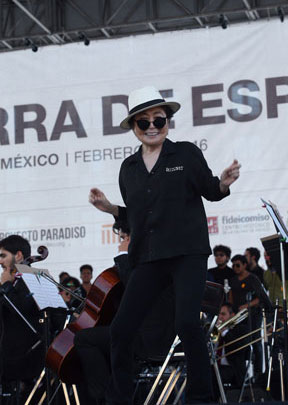 levantarnos juntos y sembrar la semilla para una paz hermosa en el mundo. La artista y activista japonesa inauguró ayer su exposición Tierra de la esperanza en el Museo Memoria y Tolerancia, en la Plaza Juárez, en el Centro Histórico, mientras en el Zócalo acudió al despliegue de 110 árboles de los deseos Foto Jesús Villaseca
