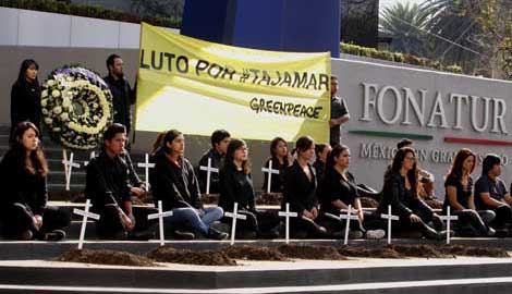 Un juzgado con sede en Cancún otorgó la suspensión definitiva al recurso interpuesto por un ciudadano contra el chapeo, desmonte y relleno en Malecón Tajamar –donde se ha denunciado la destrucción de manglar y se pretende construir un desarrollo turístico–, hasta que se cuente con la sentencia final sobre el controvertido lugar. También se desechó un recurso de queja del delegado regional de Fonatur en Quintana Roo contra esa medida. En la Ciudad de México, integrantes del grupo ecologista Greenpeace realizaron la representación Luto por Tajamar frente a las oficinas del Fondo Nacional de Fomento al Turismo para exigir la cancelación del proyecto Foto Xinhua