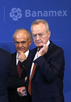 Alfredo Harp Helú y Roberto Hernández durante la 24 reunión plenaria de consejeros de Banamex, en la Ciudad de México, en la que participó el presidente Enrique Peña Nieto Foto Francisco Olvera
