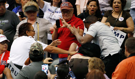 retórica de la divisiónusada por el multimillonario. En la imagen, altercado entre seguidores y detractores del empresario en Tucson Foto Ap
