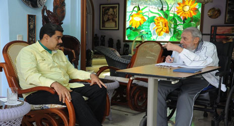 Queremos que Obama conozca la Cuba real, no la que le han contado”, dice Gustavo Machín, funcionario de La Habana que participó en las negociaciones para la normalización de las relaciones con Estados Unidos, rotas hace más de cinco décadas. En tanto, nueve cubanos murieron y 18 fueron rescatados este sábado con vida al naufragar su embarcación frente a las costas de Florida. En la imagen, el presidente de Venezuela, Nicolás Maduro, y Fidel Castro durante un encuentro de dos horas y media realizado ayer Foto Afp