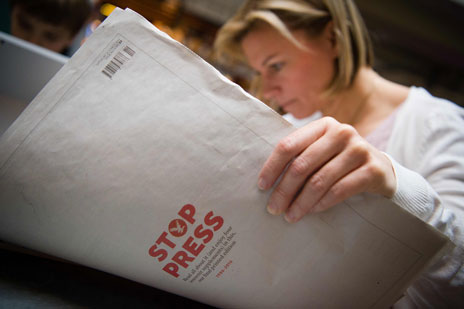 Paren las rotativas, frase que en letras rojas sobre una portada en blanco apareció en la última edición impresa de The Independent, el primero de los periódicos británicos de circulación nacional que abandona el papel y se enfoca por completo a la plataforma digital Foto Afp