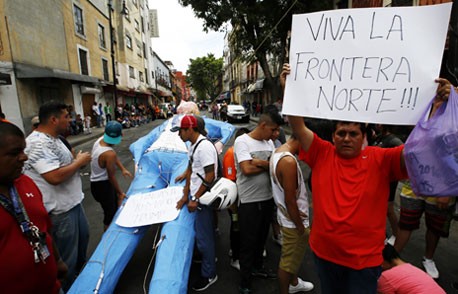 quema de los judas. En esta ocasión el monigote representaba al precandidato del Partido Republicano de Estados Unidos Donald Trump, vestido de traje azul y con peluca rubia. Vecinos del Centro Histórico de la Ciudad de México participaron de la algarabía para hacerlo explotar en mil pedazos Foto Francisco Olvera