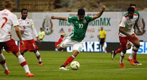 La selección mexicana amarró de forma anticipada su boleto a la última fase eliminatoria para el Mundial de Rusia 2018 al vencer 2-0 a Canadá, en el Estadio Azteca, con goles de Andrés Guardado, de penal, y de Jesús Corona (imagen); el partido decayó en el segundo tiempo. A falta de dos jornadas para concluir esta ronda, cuenta con 12 puntos y es líder del Grupo A. Pese a que la Federación Mexicana de Futbol puso en marcha la campaña Abrazados por el futbol para erradicar la expresión