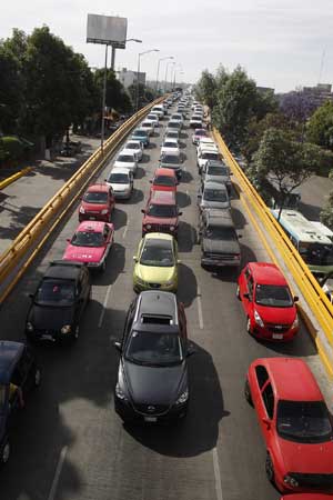 La Comisión Ambiental de la Megalópolis anunció que si se decreta la fase uno de contigencia dejarán de circular dos millones de vehículos, ya que al color de la calcomanía se sumará otro. En fase dos sólo transitarán autos con placas par o non, según se determine Foto Víctor Camacho