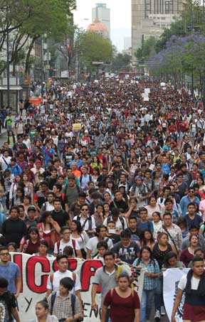 Realizan marcha hacia la SEP al quedar adscrita la institución a la oficina de Nuño