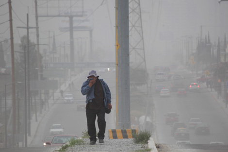 La lluvia de ceniza provocó problemas de visibilidad y afectaciones respiratorias en los habitantes de tres entidades en municipios aledaños al volcán Popocatépetl. La imagen fue captada en Cholula, Puebla Foto Ap/ Pablo Spencer