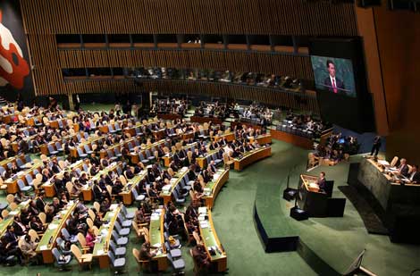 En la tribuna de la Organización de Naciones Unidas, el presidente Enrique Peña Nieto dijo que las respuestas de la comunidad internacional al problema de las drogas han sido francamente insuficientes. Subrayó el fracaso de la llamada guerra contra los estupefacientes y de las estrategias prohibicionistas, porque no han logrado inhibir la producción, el tráfico y el consumo de esas sustancias. Planteó modificar el enfoque con base en derechos humanos Foto Notimex