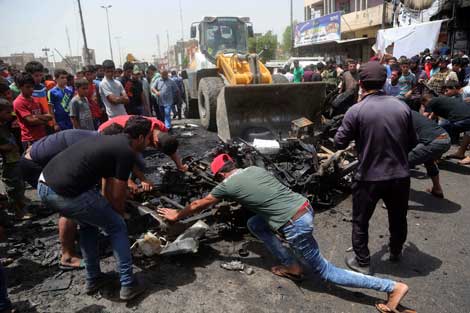 El ataque más sangriento ocurrió cerca de un mercado del barrio chiíta de Ciudad Sadr (imagen), donde un coche bomba estalló y mató a 64 personas e hirió a 82. Los otros atentados fueron en la zona de Kadhimiya y en el distrito de Jamea, en los cuales fueron detonados dos vehículos. Los embates fueron reivindicados por el yihadista Estado Islámico Foto Ap