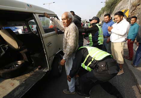 En la zona conocida como La Joroba, en la carretera México-Pachuca, cercana al paradero de Indios Verdes, fueron colocados ayer retenes de revisión en ambos sentidos. El objetivo es regularizar el transporte público concesionado ante el incremento de permisos apócrifos y de la inseguridad Foto Francisco Olvera