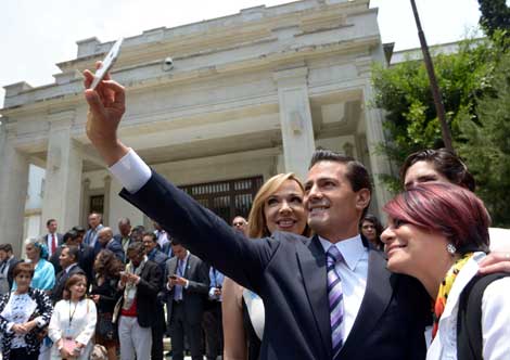 Luego del acto conmemorativo por el Día Internacional de Lucha contra la Homofobia, el presidente Enrique Peña Nieto invitó a los asistentes a Los Pinos a recorrer la residencia oficial y tomarse una fotografía Foto Notimex