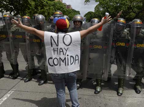Una venezolana protesta en Caracas contra las medidas de emergencia económicas decretadas por el gobierno de Nicolás Maduro, ante la carestía y el desabasto de productos básicos Foto Afp