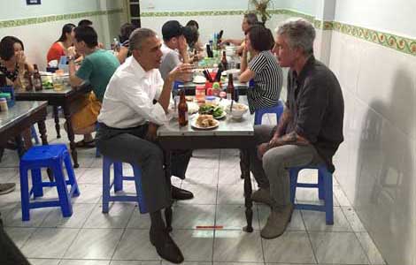 fideos y cerveza fríacon el famoso chef Anthony Bourdain en un modesto restaurante de Hanoi Foto tomada de @Bourdain