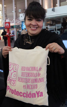 La comandanta de la policía comunitaria de Olinalá, Guerrero, en el aeropuerto capitalino, momentos antes de partir hacia Estados Unidos, en marzo de este año Foto Francisco Olvera