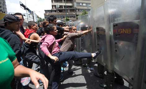 El gobierno del presidente Nicolás Maduro consideró una buena señal la declaración que emitió el organismo multilateral en apoyo al diálogo nacional para encontrar una solución a la crisis política y económica que enfrenta ese país, en lugar de la Carta Democrática invocada por el secretario general de la organización, Luis Almagro. En Caracas, decenas de personas se enfrentaron con policías y militares en protesta por la escasez de alimentos. Los hechos ocurrieron a pocas calles del Palacio de Miraflores Foto Ap