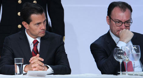El secretario de Hacienda señaló que, frente a los riesgos de carácter financiero que plantea el complejo entorno internacional, es necesario profundizar el ajuste al gasto público, aun cuando la medida tenga un efecto sobre el crecimiento de la economía. La declaración la realizó en la reunión nacional de consejeros del grupo BBVA Bancomer, a la que acudió el presidente Enrique Peña Nieto. En el encuentro, Luis Robles Miaja, dirigente de la institución crediticia, dijo que una cifra no menor de líderes empresariales disminuyó la valoración de las reformas impulsadas por el gobierno federal; inclusive algunos llegaron a manifestar desilusión Foto María Luisa Severiano