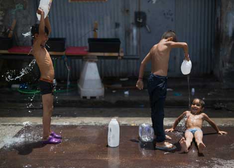 Niños afganos se bañan en un centro de desplazados en puerto Piraeus, Grecia. El Alto Comisionado de Naciones Unidas para los Refugiados (Acnur) manifestó su preocupación por el elevado número de menores de edad que viajan solos o han sido separados de sus padres durante el éxodo Foto Ap