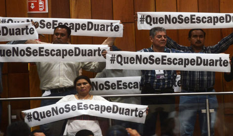 Duarte no puede combatir la corrupción, porque él es la corrupción. Lo que se frenó fue el nombramiento de Francisco Portilla Bonilla, a quien se liga con el mandatario, como titular de la fiscalía especializada en el tema Foto Sergio Hernández