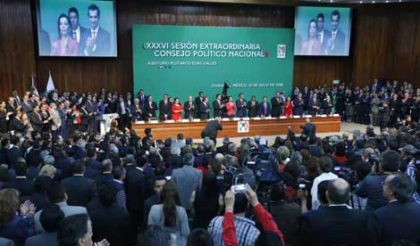 El sector juvenil del PRI, gobernadores y funcionarios del gobierno federal cobijaron a Enrique Ochoa Reza en la ceremonia de asunción a la presidencia nacional del partido, a la que también asistieron más de 500 consejeros, quienes no escatimaron vítores y porras a su nuevo dirigente, quien afirmó que con él da inicio una nueva etapa en el partido. En estos momentos no podemos ignorar los problemas ni culparnos entre nosotros mismos y caer en el desánimo, advirtió. Asimismo, llamó a construir una era en la que el gobierno dé cuentas al partido Foto Francisco Olvera