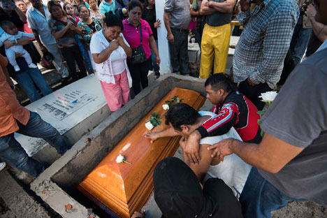 La oficina en México del Alto Comisionado de Naciones Unidas para los Derechos Humanos lamentó el asesinato del periodista Pedro Tamayo Rosas, quien estaba bajo protección del gobierno del estado de Veracruz. Llamó a las autoridades a emprender una investigación efectiva e imparcial de los hechos. En la imagen, familiares y amigos del informador durante su funeral, este viernes en Tierra Blanca Foto Afp