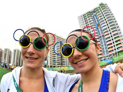 Las delegaciones que competirán en los Juegos Olímpicos de Río de Janeiro comenzaron a dar vida y color a la villa que las aloja. En la imagen, dos representantes del judo estadunidense Foto Afp