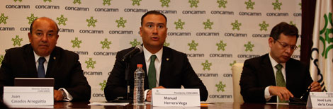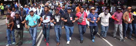 En la imagen superior, la Coordinadora Nacional de Trabajadores de la Educación realizó ayer una marcha desde las inmediaciones de Los Pinos al Zócalo capitalino para insistir en la abrogación de reforma educativa. Abajo, Manuel Herrera Vega, presidente de la Confederación de Cámaras Industriales (centro), anuncia la intención de empresarios de cancelar inversiones y creación de empleos si continúan las movilizaciones del magisterio disidente Fotos Jesús Villaseca y Luis Humberto González
