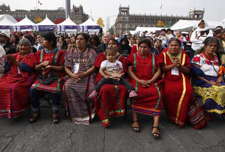 Con el ritual huasteco conocido como Costumbre, este sábado comenzó la tercera edición de la Fiesta de las Culturas Indígenas, Pueblos y Barrios Originarios de la Ciudad de México, en la explanada del Zócalo. Ecuador, la región Huasteca y el pueblo de San Pedro Tláhuac son los invitados de honor. Más de 21 grupos originarios mostrarán su trabajo artesanal y gastronómico Foto Francisco Olvera
