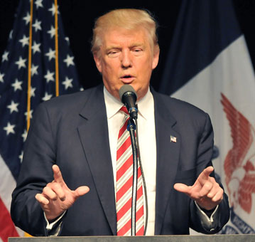 El candidato republicano Donald Trump ofrece una conferencia en un acto de campaña en Clive, Iowa. Encuestas nacionales lo mantienen muy cercano a su adversaria demócrata Hillary Clinton Foto Afp